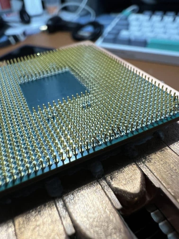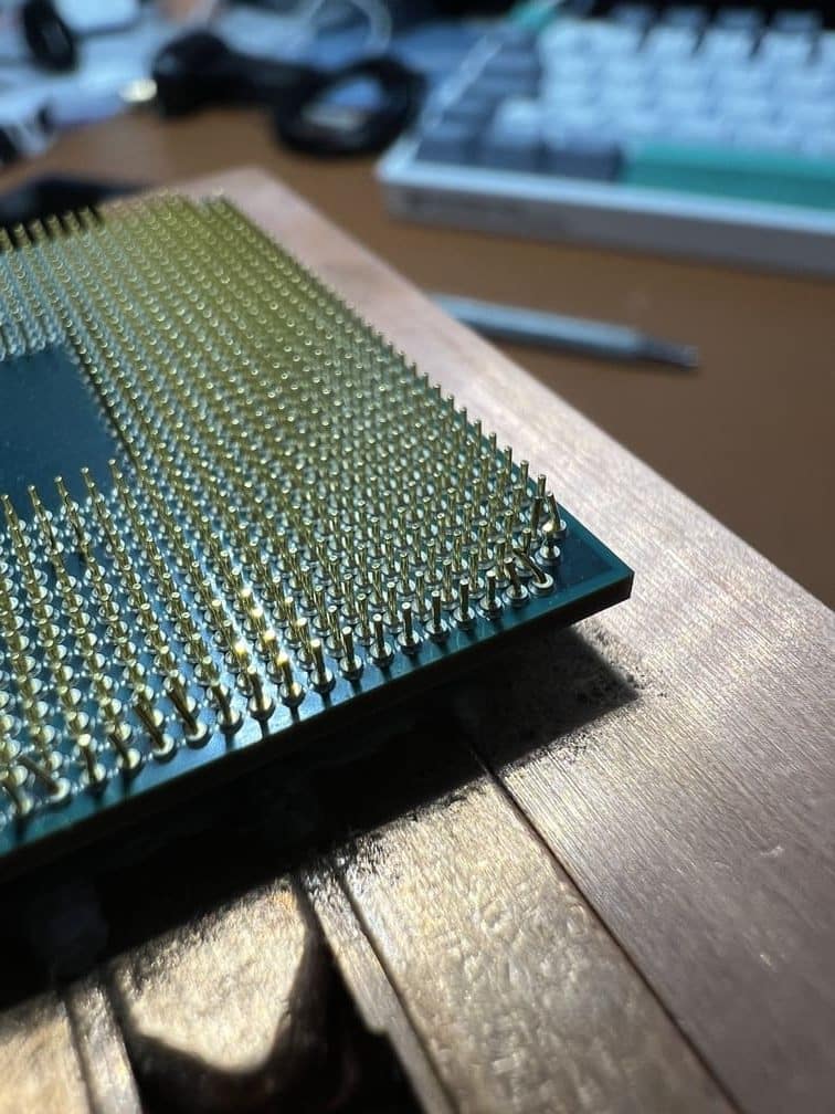 De hecho, al retirar los anclajes del disipador e intentar levantarlo, saca el procesador del socket sin levantar la palanca y acaba doblando un buen número de pines.