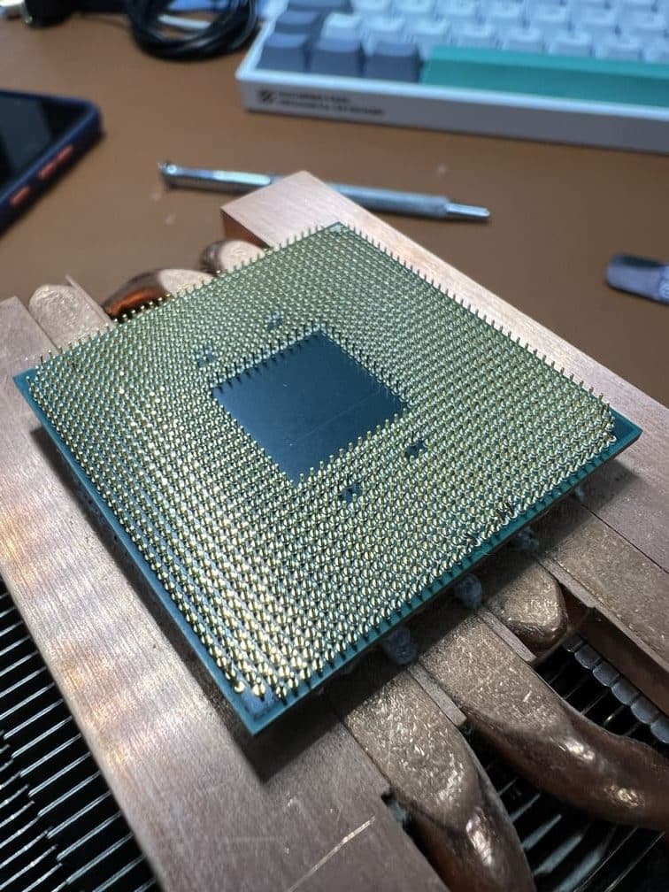 Tras conseguir despegar el procesador del disipador con alcohol, cuidado y mucha paciencia, girando el procesador, consiguió salvar el equipo gaming, de alto rendimiento, por cierto.