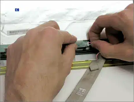 • Si la pantalla portátil es LCD, retirar el enchufe blanco del inverter. Si no puede porque el inverter no esta accesible, puede tener que destornillarlo.