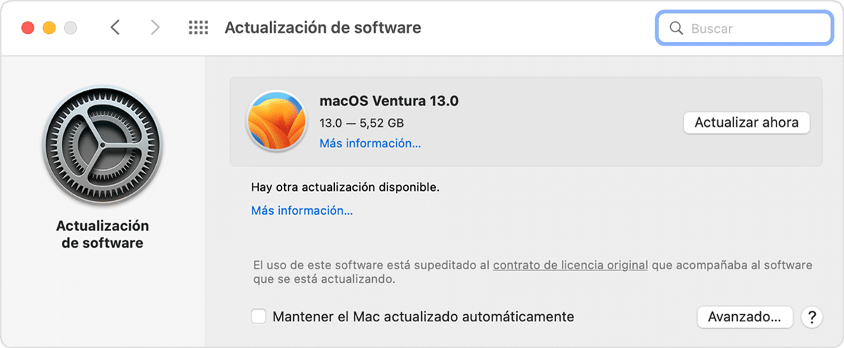 - Abrir «Preferencias del sistema», seleccionar «Actualización de software» y seguir las instrucciones para descargar e instalar la última versión de macOS.